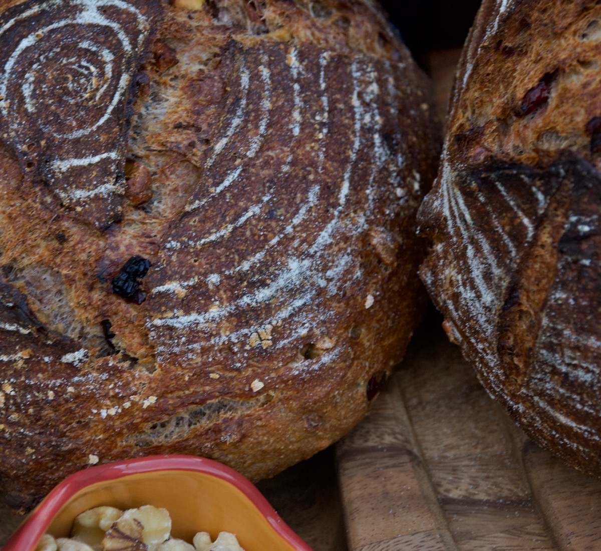There is just enough wine in this one to add a nice flavor without overpowering the bread or inhibiting it’s fermentation. The crumb is nice and moist and you get a mouthful of walnuts and cranberries with each bite.
