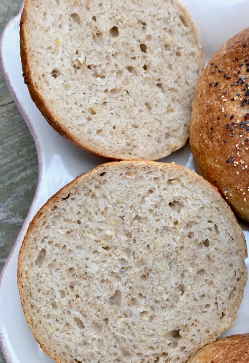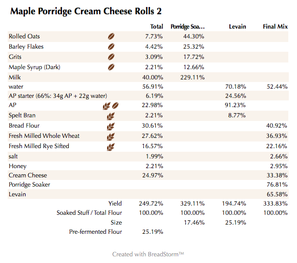 I needed some rolls to eat with all the food we’ve been cooking with our Instant Pot and figured I would make a version of one of my favorites.  Cream cheese always makes for a nice soft crumb and the addition of the maple syrup in the porridge added a little extra sweetness to go along with the honey.