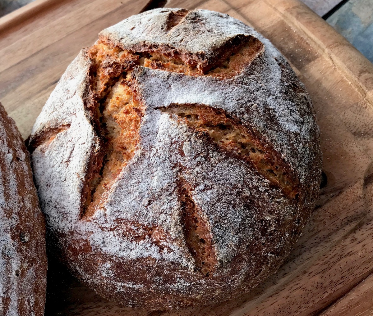 The bread turned out very tasty and makes great grilled bread or just toasted with some cheese or butter. All the goodies packed into this one along with the fresh milled whole wheat and rye made this extremely flavorful. The small amount of maple syrup added just enough sweetness to round out the flavor profile.