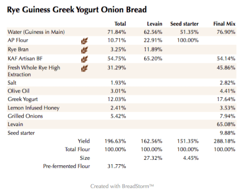 This one is a keeper. The depth of flavor added by the Guinness,coupled with the grilled onions and freshly ground rye is amazing. The added freshly made yogurt provided a nice soft crumb as well. All in all, this one is worth trying. It’s the perfect grilled bread as well as sandwich bread.