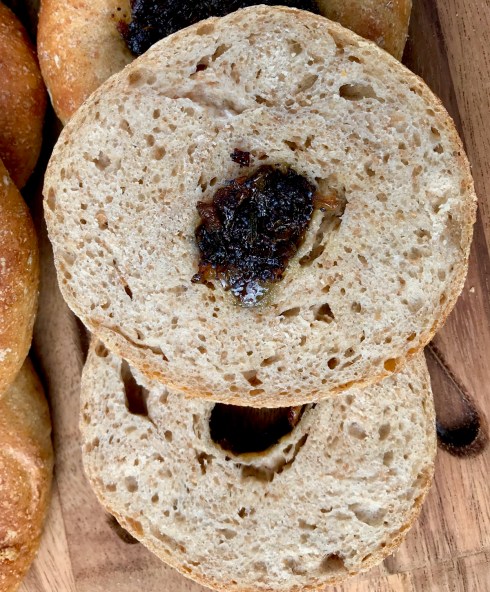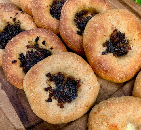 I decided to use around 28% freshly milled and sifted spelt flour along with First Clear flour in this bake. I also use freshly caramelized onions instead of dehydrated onions and added some balsamic vinegar to finish them off. I under-estimated how much onions to sub for the dehydrated and did not have enough for all the biayls so I used some shredded cheese instead. Not a bad replacement if you ask me.