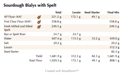 It’s been too long since I made some bialys. Bialys seem to be the forgotten stepchild of bagels it seems :). My original formula and procedure is here.