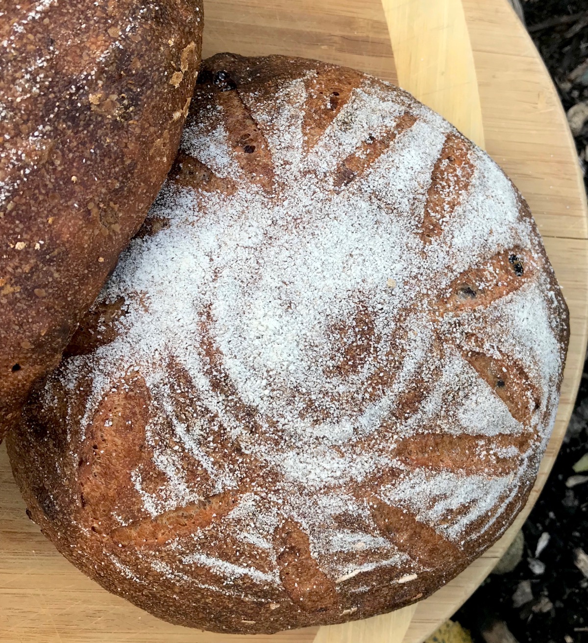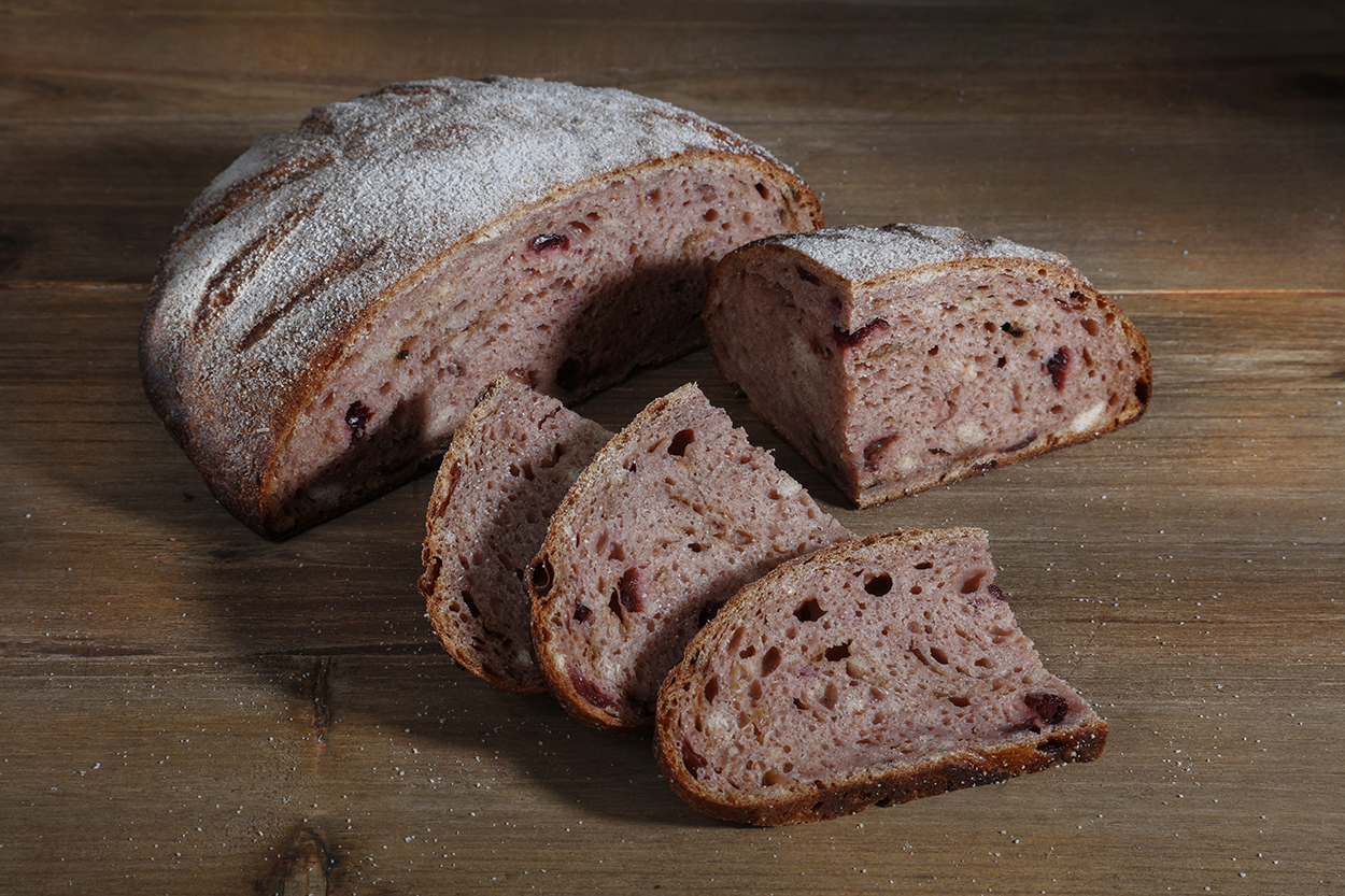 I had some leftover purple sweet potatoes and caramelized onions so threw this bread together. I thought the cranberries would make a nice addition to the flavor profile along with the nice nutty fresh milled spelt flour.