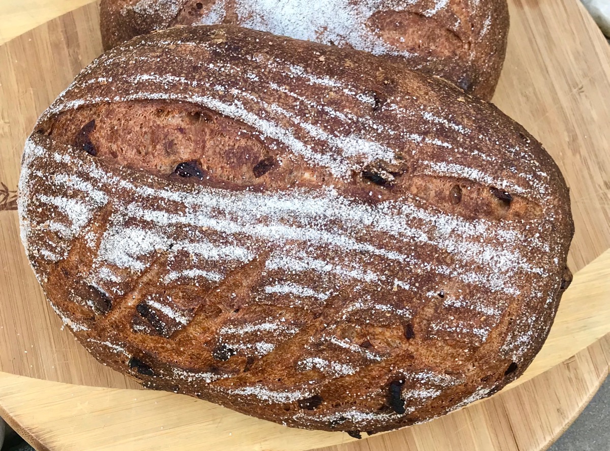 Mix the flours and 85% or so, of the water together in your mixer or by hand until it just starts to come together, maybe about 1 minute. Let it rest in your work bowl covered for 30 minutes to 1 hour. Next add the salt, starter (cut into about 7-8 pieces), olive oil, potatoes, yogurt, and the rest of the water and mix on low for 4 minutes. Now add the cranberries and onions and mix until incorporated about 25 seconds or so. Remove the dough from your bowl and place it in a lightly oiled bowl or work surface and do several stretch and folds. Let it rest covered for 10-15 minutes and then do another stretch and fold. Let it rest another 10-15 minutes and do one additional stretch and fold. After a total of 1.5 hours place your covered bowl in the refrigerator and let it rest for 12 to 24 hours. (If you have a proofer you can set it to 80 degrees and follow above steps but you should be finished in 1 hour).