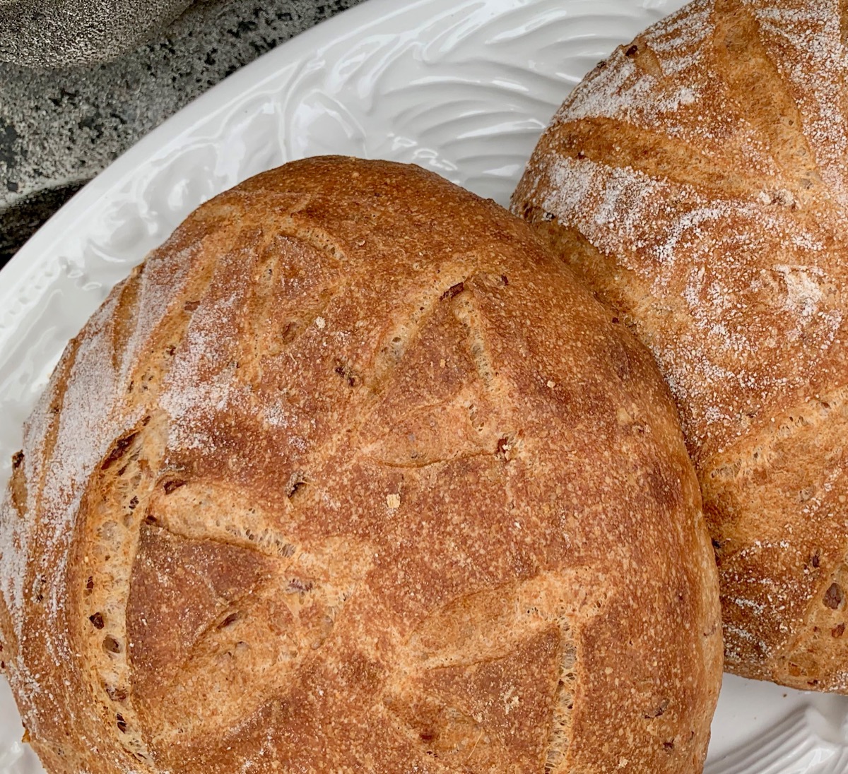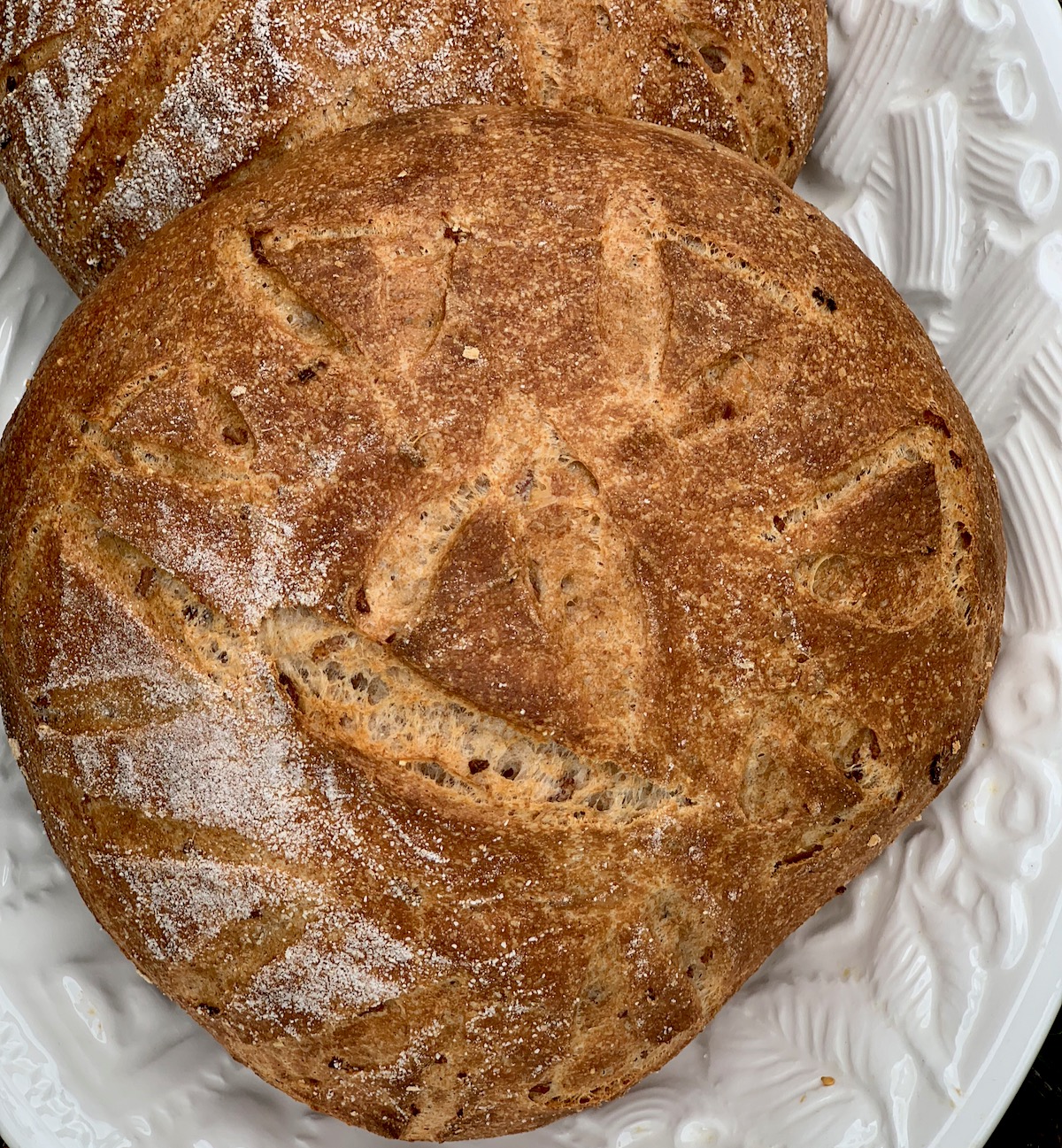 Lower the temperature to 450 degrees. Bake for 35-50 minutes until the crust is nice and brown and the internal temperature of the bread is 205 degrees.