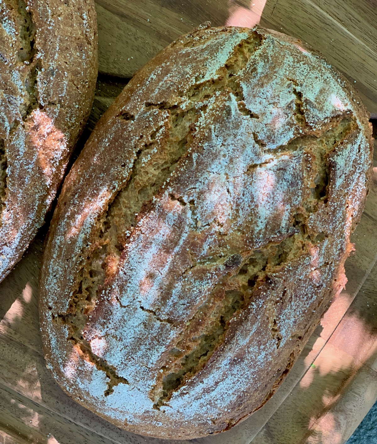 This is a 66% rye bread made with fresh milled rye sifted so it’s close to a medium grind rye flour. I added some fresh milled spelt as well which really compliments the rye. I had some left-over cheese grits from my wife’s breakfast the other day so into the mix it went along with some mashed potatoes which were roughly mashed.