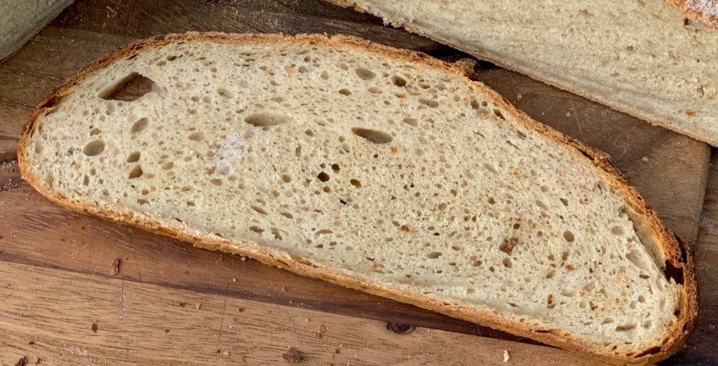 I was very happy with how this one came out. The flavor was nutty with a nice moist open crumb. This was a perfect bread for grilling with some good olive oil brushed on and some melted cheese.