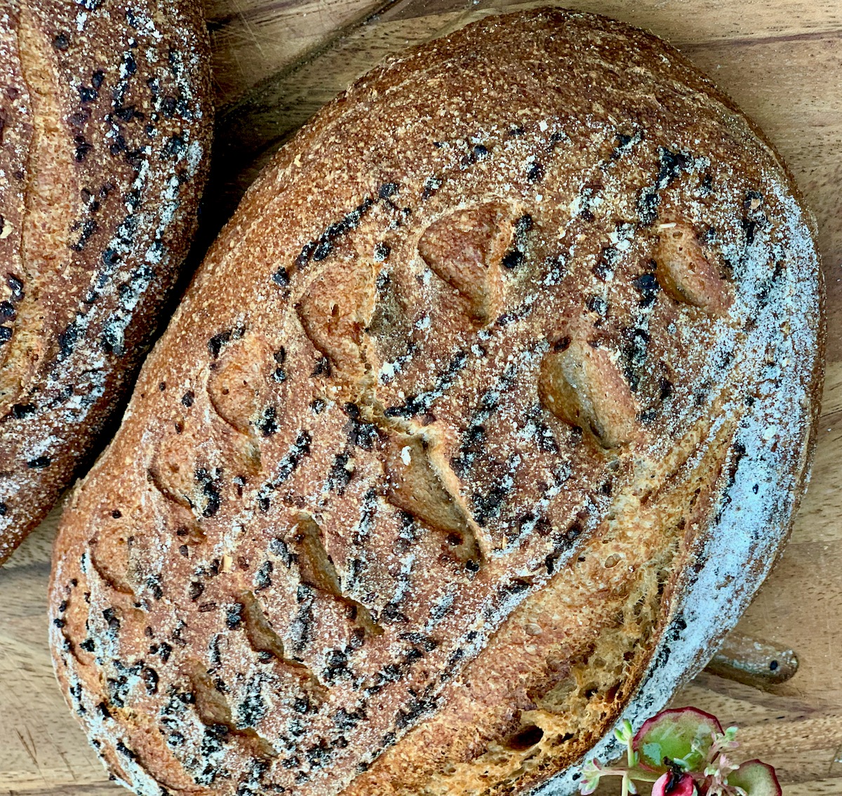 I added some toasted onions to the top of the loaves by adding them to the inside of the bannetons. I love onions so this really took this one over the top.