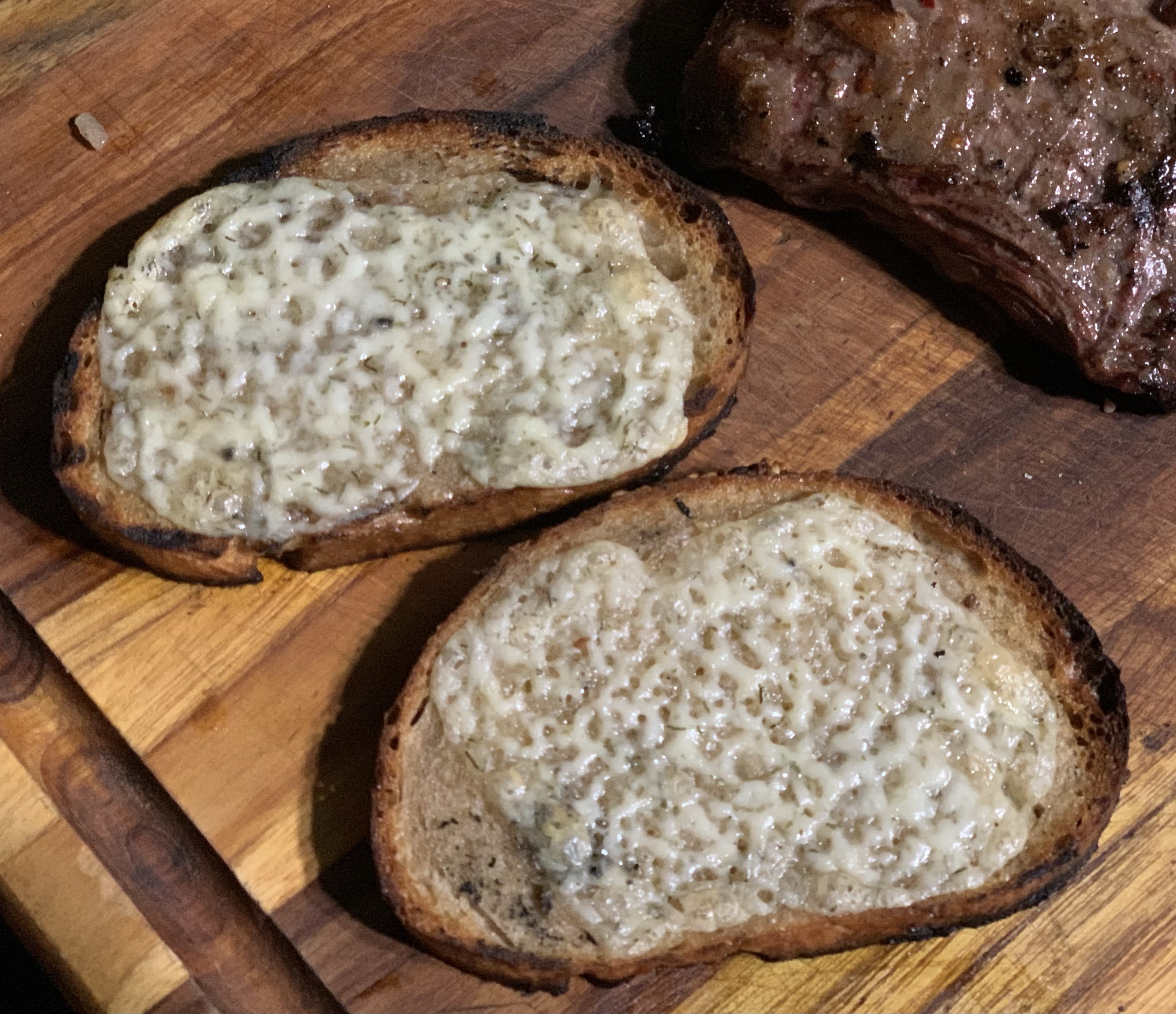 Grilled Bread with Havarti Dill Cheese–with Grilled Steak