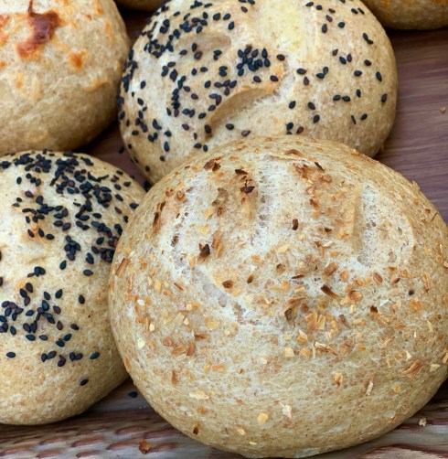 Right before you are ready to put them in the oven, using a simple egg wash brush each roll and sprinkle on your topping of choice. Next add 1 cup of boiling water to your steam pan or follow your own steam procedure.