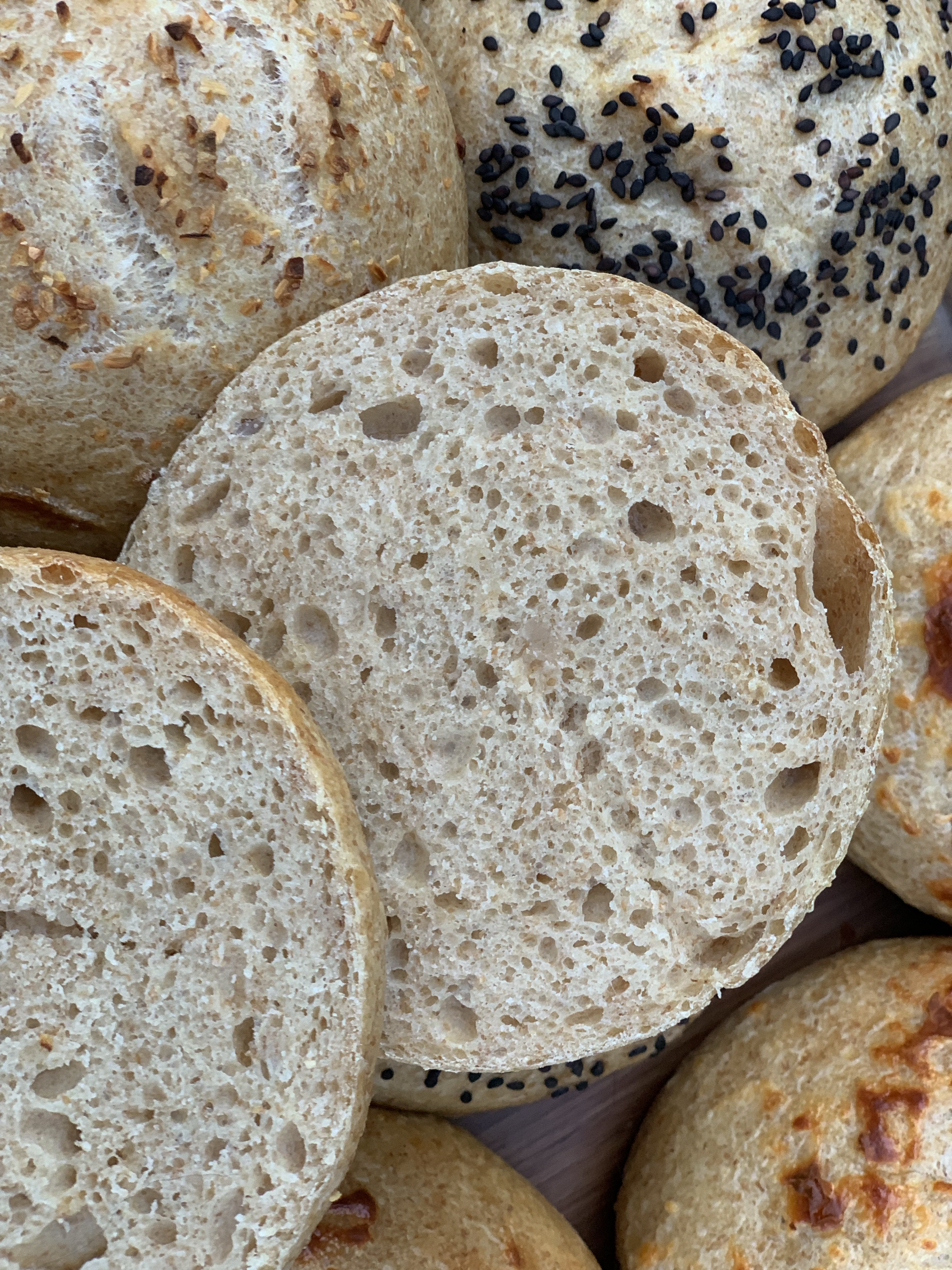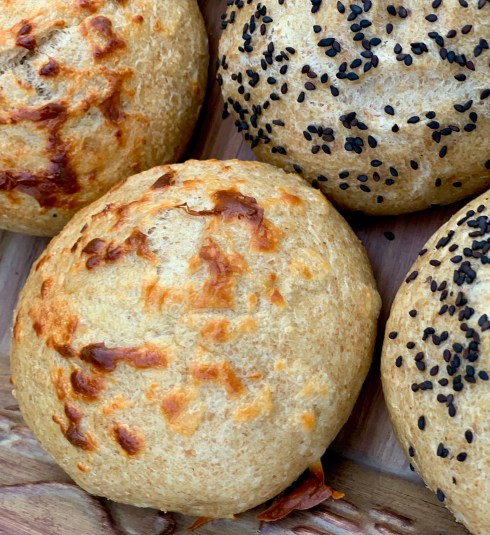 The butter and ricotta combination really made for a wonderful soft and open crumb. These rolls came out excellent with toasted onions, smoked cheddar and black sesame toppings for a nice variety.