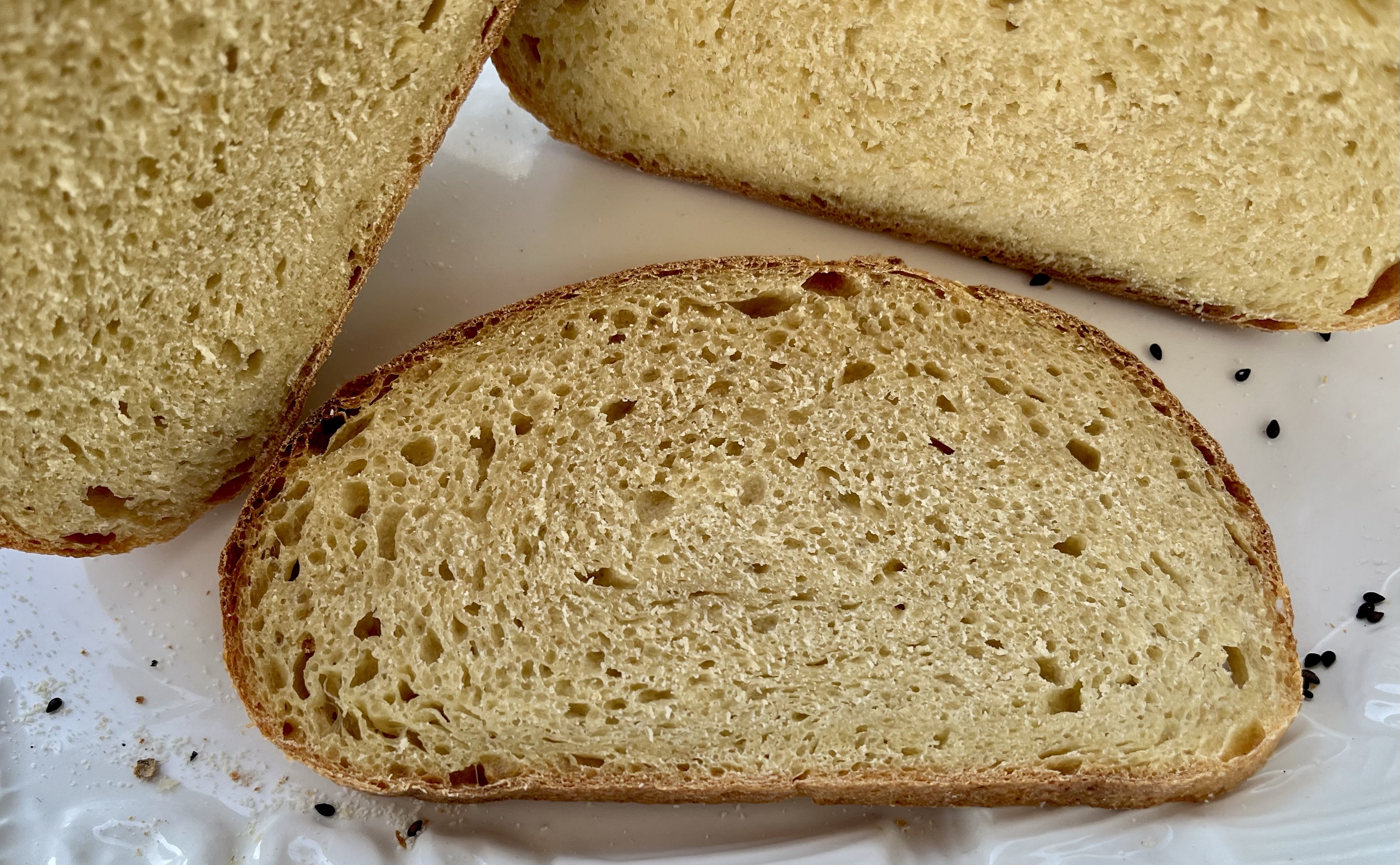 This is a nice 46% freshly milled Durum bread with some bread flour. I added some egg yolks for some additional flavor and moisture and a little honey for sweetness.