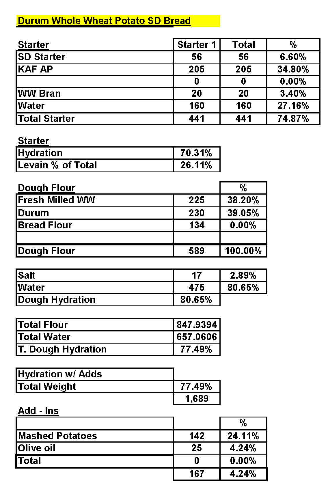 Fresh milled durum and potatoes make a great combination. I added some high extraction fresh milled whole wheat and a little KAF bread flour as well.