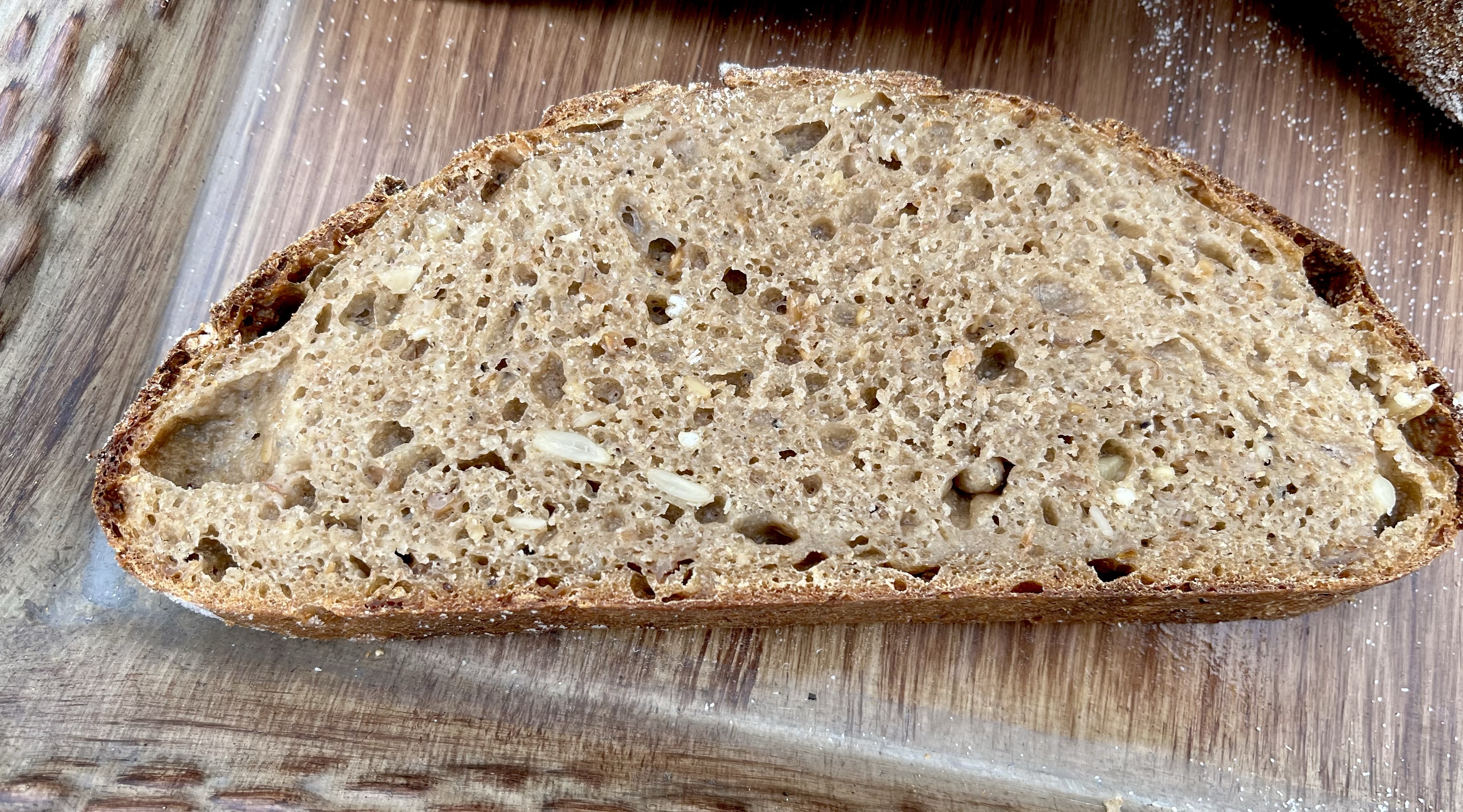 I was quite please with the final bread. It had a nice malty flavor with a moist and crunchy crumb from the porridge.