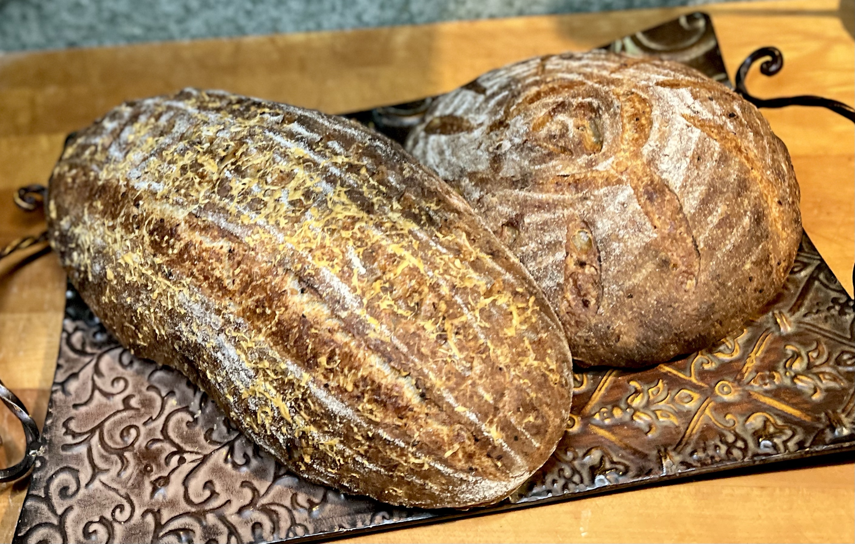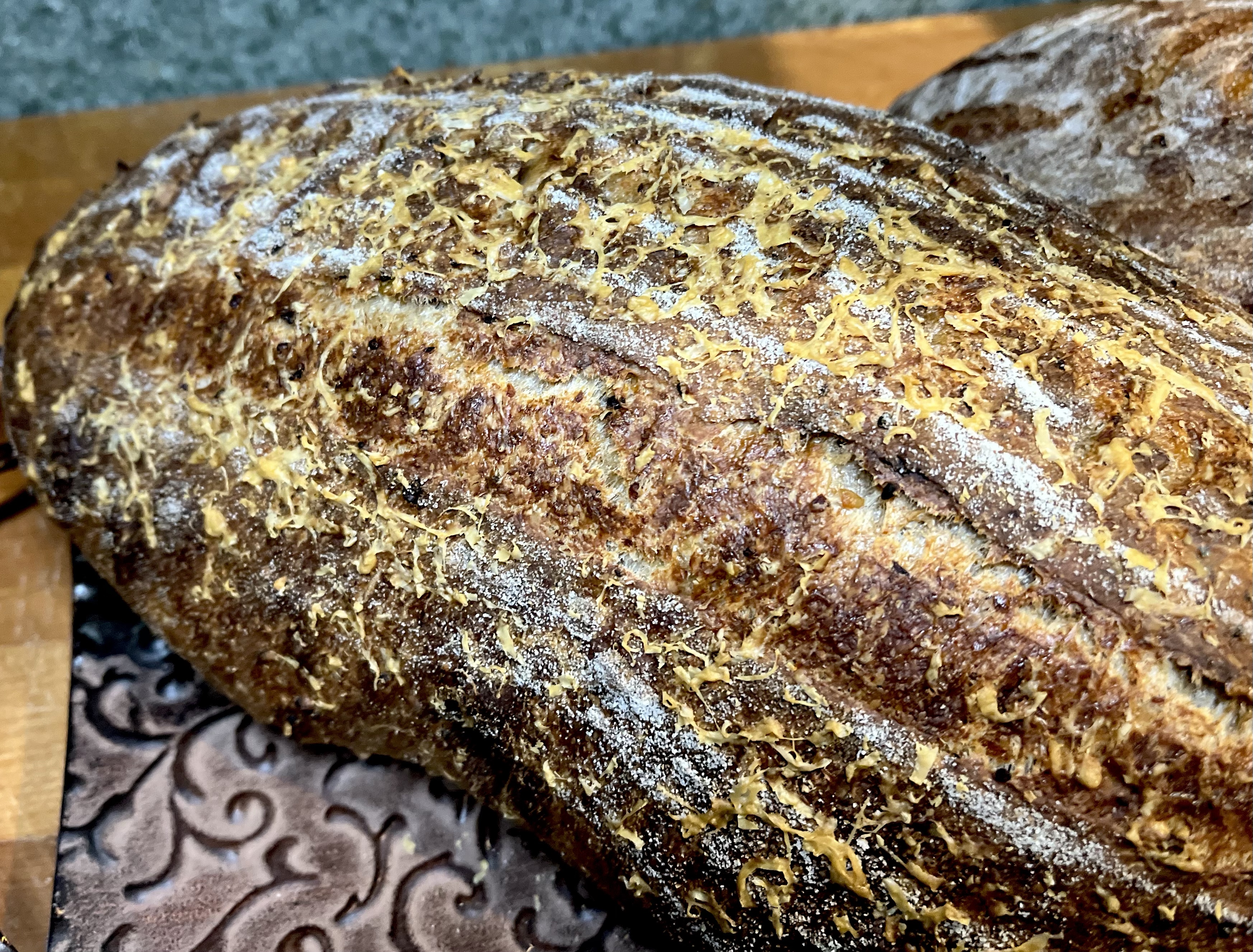 I grated some of my favorite Vermont cheddar over the top of one of the loaves for some added flavor. This one was definitely a keeper full of flavor from all the fresh milled grains with a nice open and moist crumb.