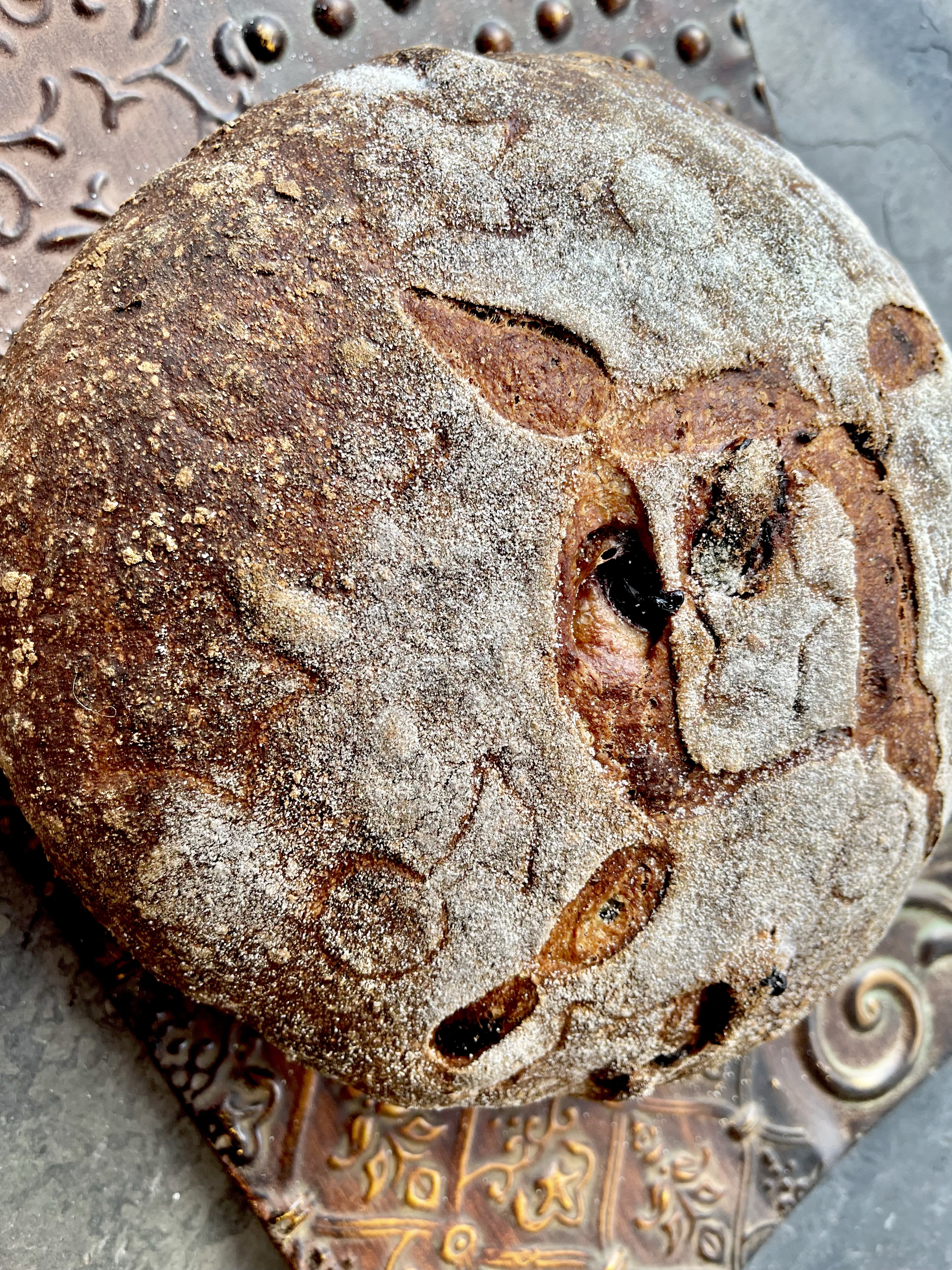The dough was very hydrated with the extra moisture from the cherries and grits but ended up producing a nice moist and flavorful bread. The crumb was not as open as I had hoped but this bread makes great toast and grilled bread with some fresh olive oil and mozzarella.