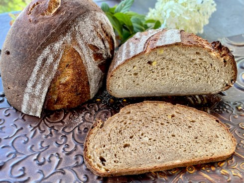 I like to keep the potatoes rustic so you can actually see some of the chunks in the crumb shot which I prefer.  The whole wheat and rye were both freshly milled from Barton Springs Mill berries and sifted and milled twice for a high extraction flour.  The spelt was also milled with my Mockmill 200 and only sifted once as I don’t find any need to do 2 sifts and mill passes with Spelt.