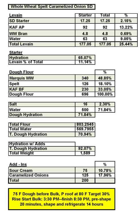 I love adding caramelized onions to bread. I used a combination of fresh-milled Marquis whole wheat from Barton Spring Mills along with some freshly milled spelt and KAF bread flour.