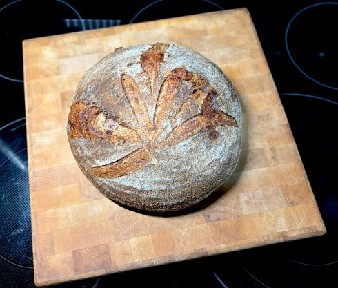 This one was made with fresh-milled Butler’s Gold and Spelt from Barton Springs Mill. The rest of the flour was King Arthur bread flour.