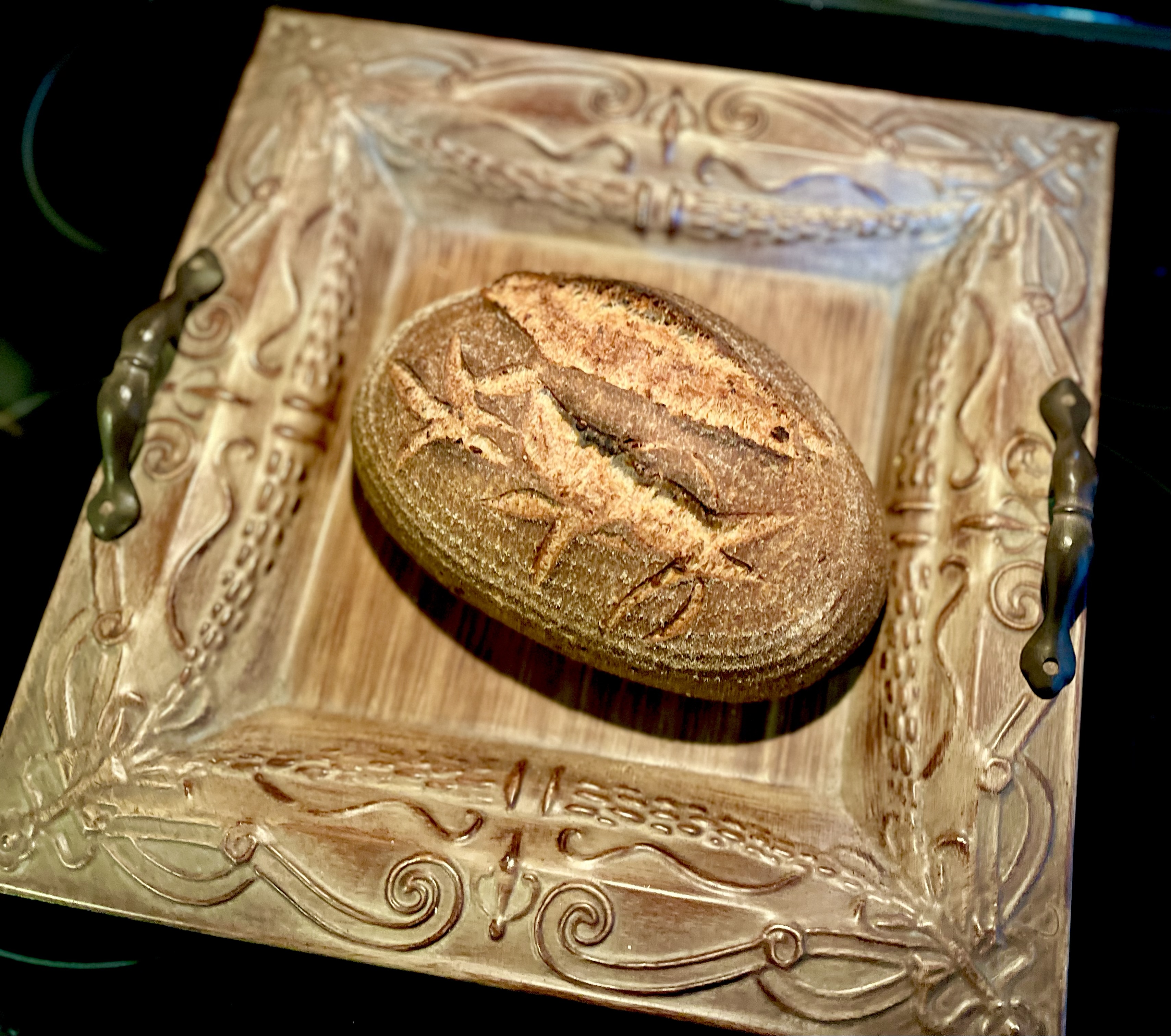 When you are ready to bake, preheat your oven to 540°F an hour beforehand and prepare for steam. Let your dough sit at room temperature while the oven is warming up. When ready to bake, score as desired. Prepare your oven for steam. I have a heavy-duty baking pan on the bottom rack of my oven with 1 baking stone above the pan and one on the top shelf.  I pour 1 cup of boiling water into the pan right after I place the dough in the oven.  I then lower the temperature of the oven to 450°F for a miche or 455°F for smaller individual loaves. Bake until they are nice and brown and the internal temperature is at least 205 – 210°F.