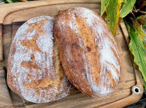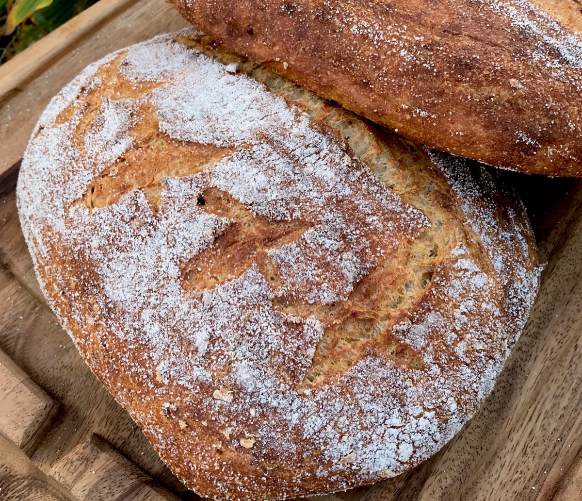 After 5 minute lower the temperature to 450 degrees. Bake for 35-50 minutes until the crust is nice and brown and the internal temperature of the bread is 205 degrees.