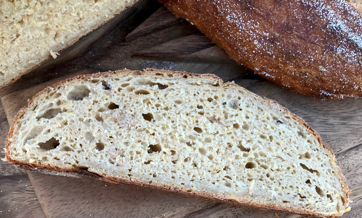 Take the bread out of the oven when done and let it cool on a bakers rack before for at least 2 hours before eating.