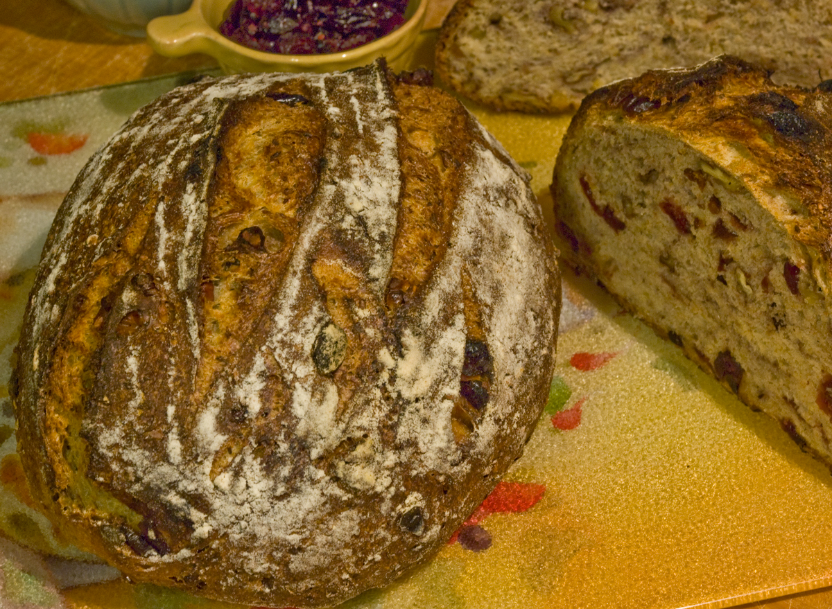 Mix the flours and the water for about 1 minute. Let the rough dough sit for about 20 minutes to an hour. Next add the levain, cooled porridge, Greek Yogurt and salt and mix on low for 5 minutes. Now add the walnut pieces along with the cranberries and mix on low for another minute until they are incorporated. You should end up with a cohesive dough that is slightly tacky but manageable. Remove the dough from your bowl and place it in a lightly oiled bowl or work surface and do several stretch and folds. Let it rest covered for 10-15 minutes and then do another stretch and fold. Let it rest another 10-15 minutes and do one additional stretch and fold. After a total of 2 hours place your covered bowl in the refrigerator and let it rest for 12 to 24 hours. (Since I used my proofer I only let the dough sit out for 1.5 hours before refrigerating).