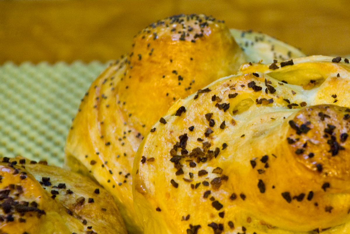 I used some smoked sesame seeds, toasted onions and poppy seeds for the toppings after applying a double egg wash.
