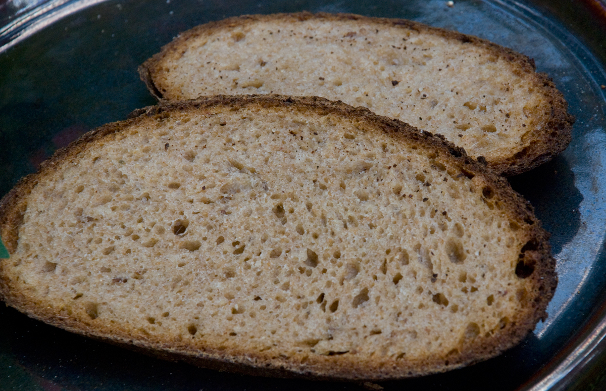 The final bread came out excellent with a nice dark crust from the sugars in the dates and wonderful sweet and tangy flavor which goes well with just about anything.  The crumb was nice and moist as well.