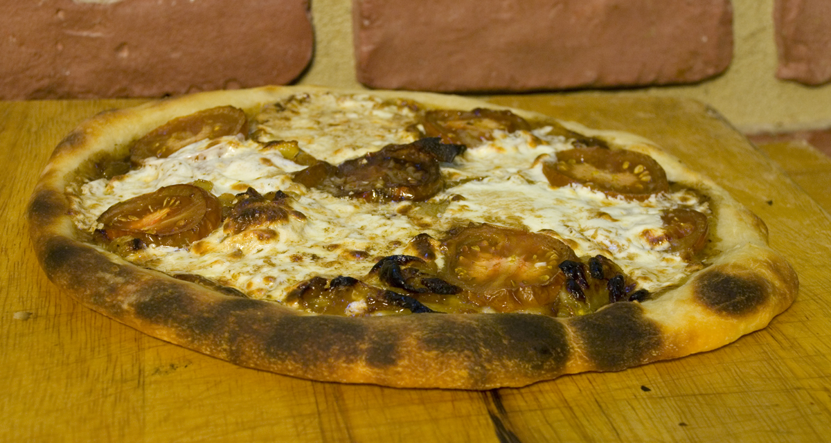 I made 2 pizzas the first day with one being a fresh tomato and mozzarella marinated in balsamic vinegar with caramelized onions.  The second pizza was fresh mozzarella, tomato sauce and home made turkey meatballs.