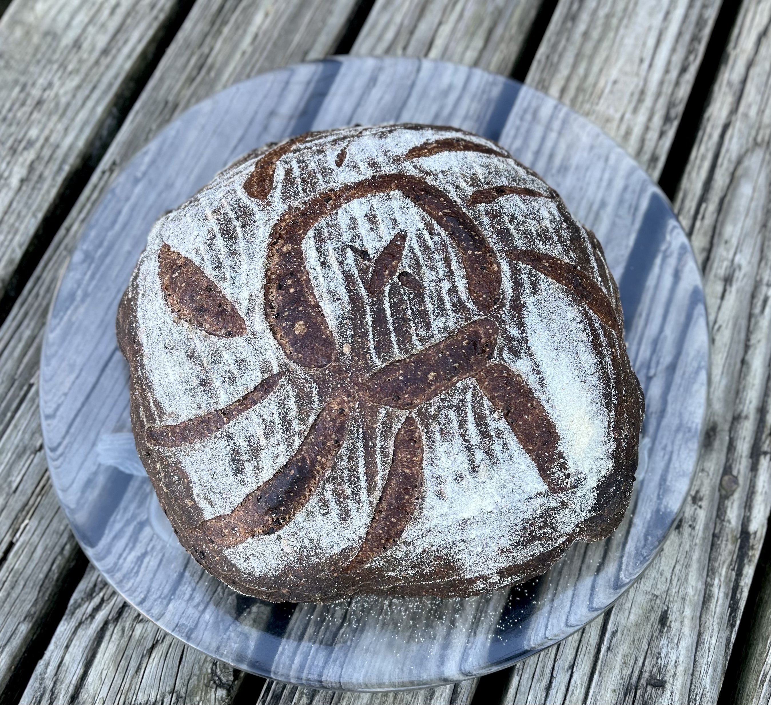 After 1 minute lower the temperature to 450 degrees. Bake for around 35 minutes or until the breads are nice and brown and have an internal temperature around 200-210 F. I made one large Miche so I baked this for close to an hour and lowered the temperature to 440 degrees after 30 minutes.