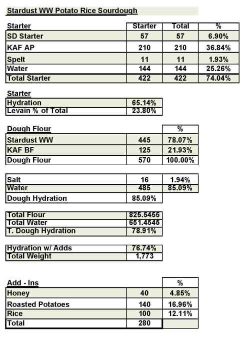 I used about 58% of the Stardust in the total flour, with the balance being KAF bread flour. I would definitely use close to a 100% of the Stardust next time I bake this loaf, now I know how it behaves.