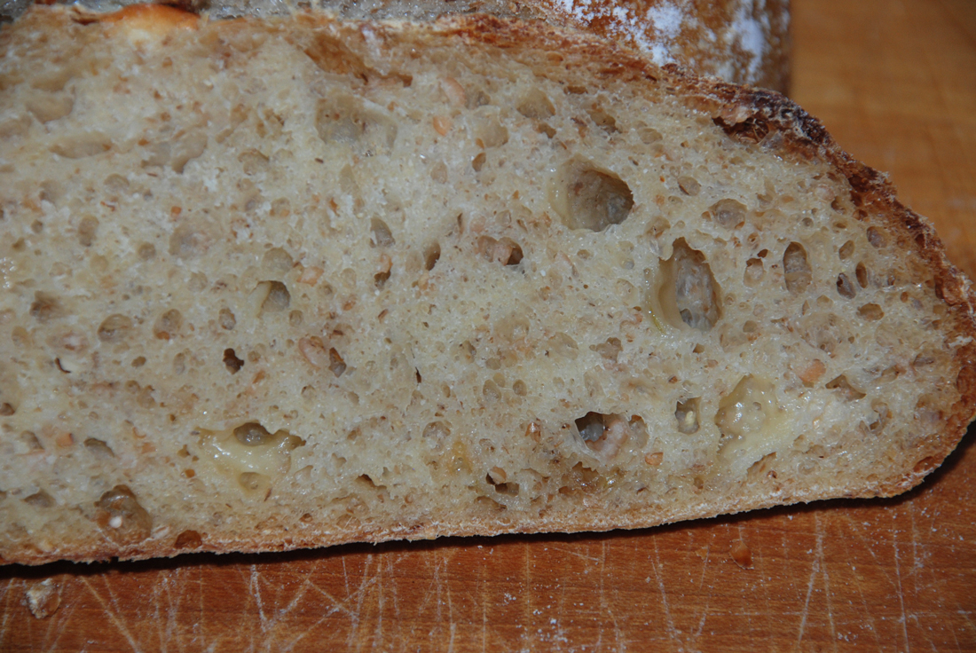Total Hydration (I included Wheat Germ and Cracked Wheat as flour which is not necessarily correct, but that’s what I like to do): 71%